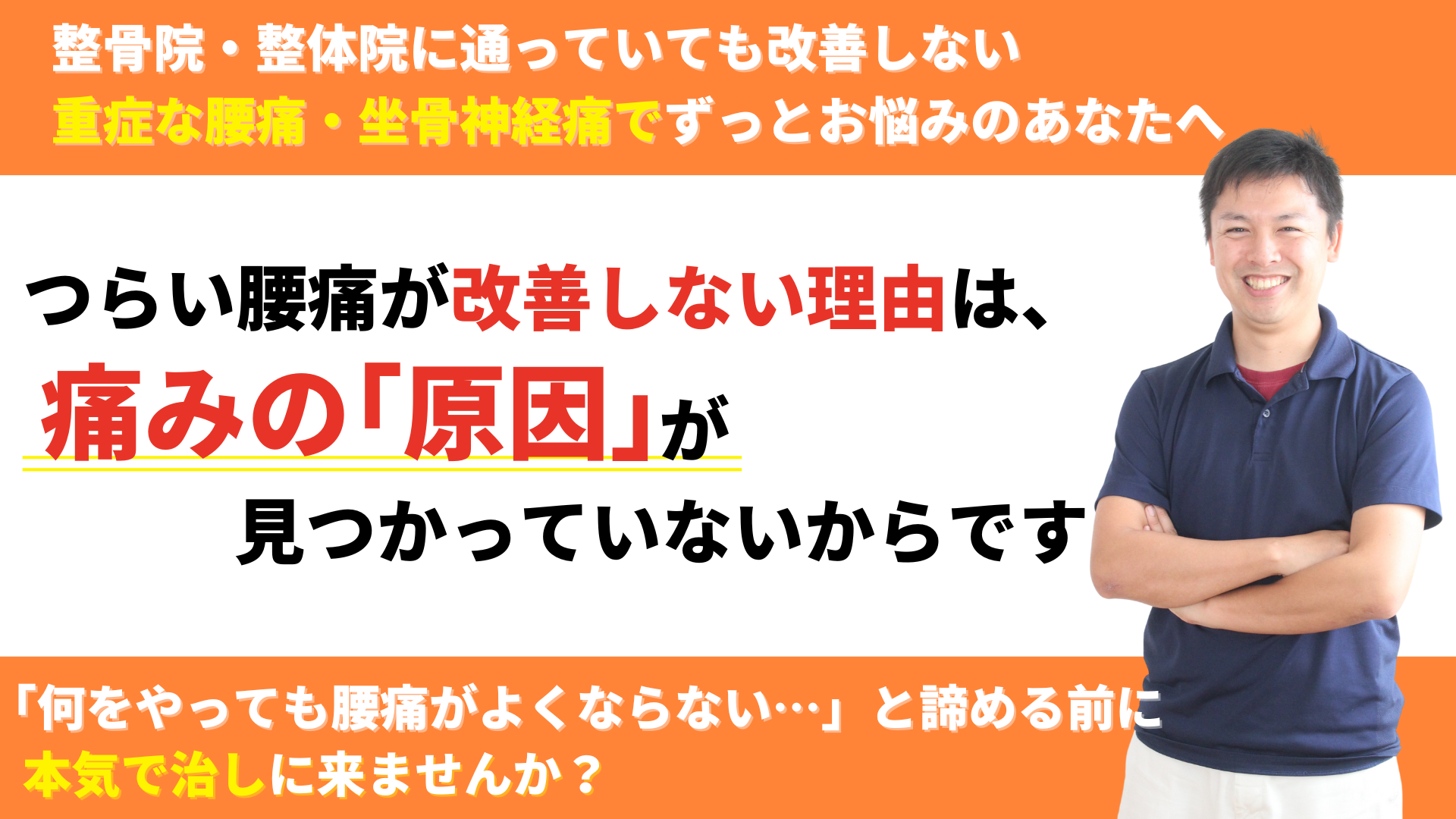 今まであなたの痛みシビレが改善しなかったのは、「腰痛の根本原因を解消できなかった」からです。